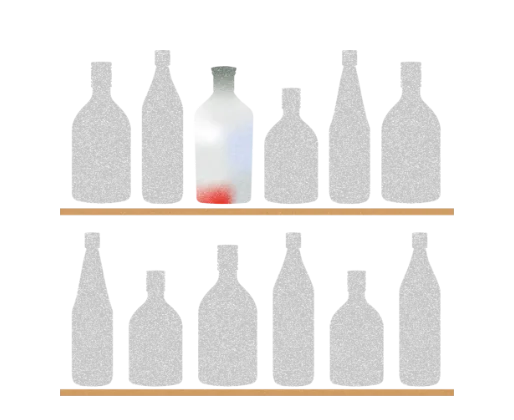 この美しいデザインを活かすために、商品名や表示は首ラベルと首掛けに集約し、胴には余計なものを入れずに仕上げています。